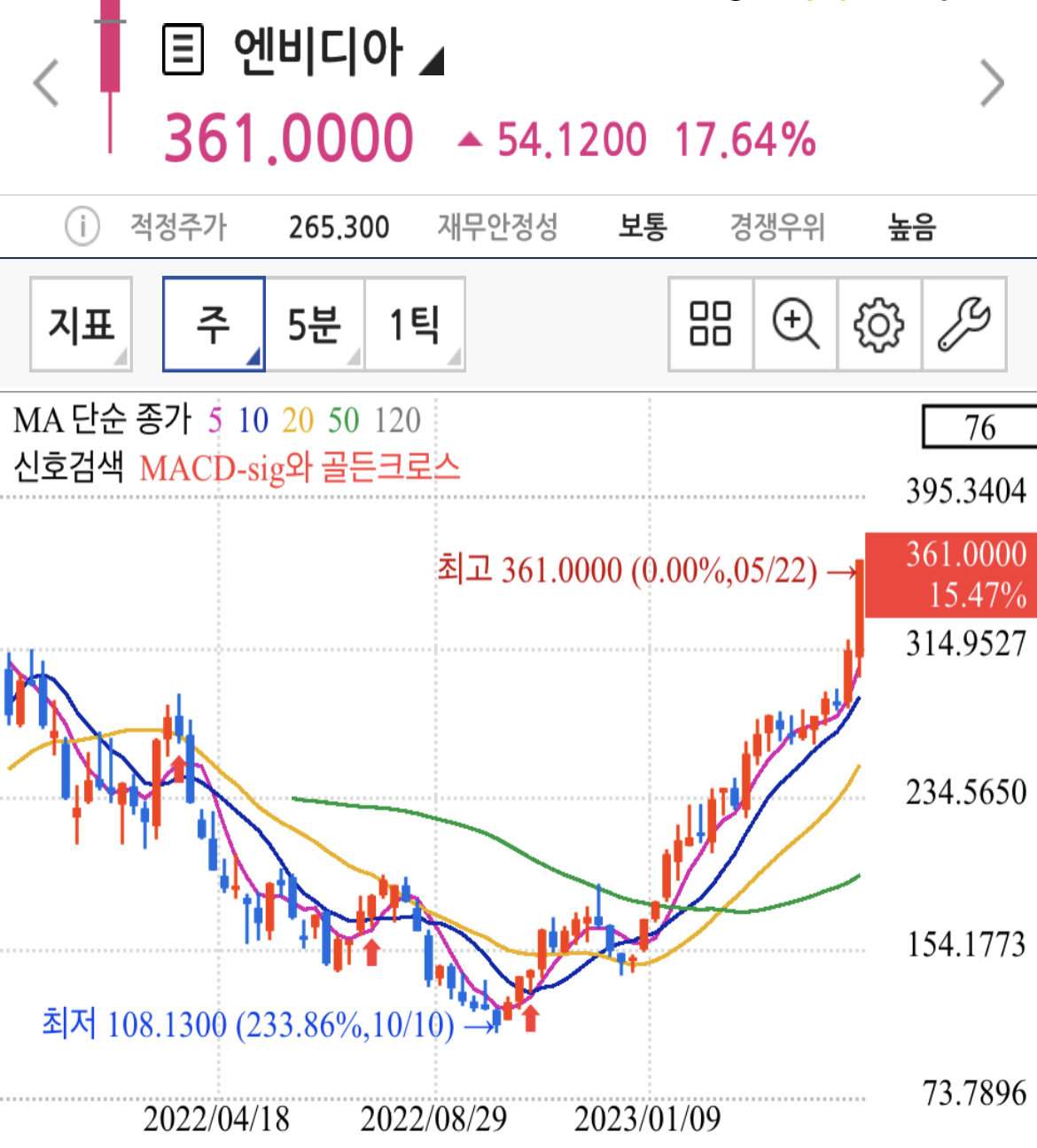 엔비디아 관련주와 함께 AI관련주, chatGPT 관련 테마주들이 대부분 가격조정과 기간 조정을 거친 차트 흐름입니다.