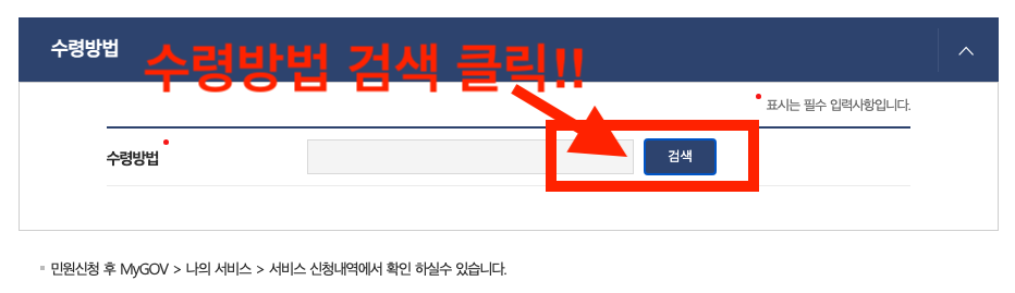 수령방법 검색 버튼을 클릭하면 팝업이 뜨는데 내가 원하는 방식으로 선택해주면 됩니다.