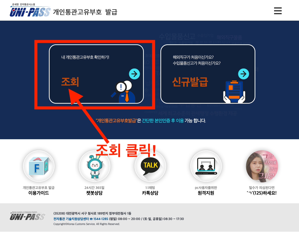 관세청 홈페이지 : https://unipass.customs.go.kr/csp/persIndex.do