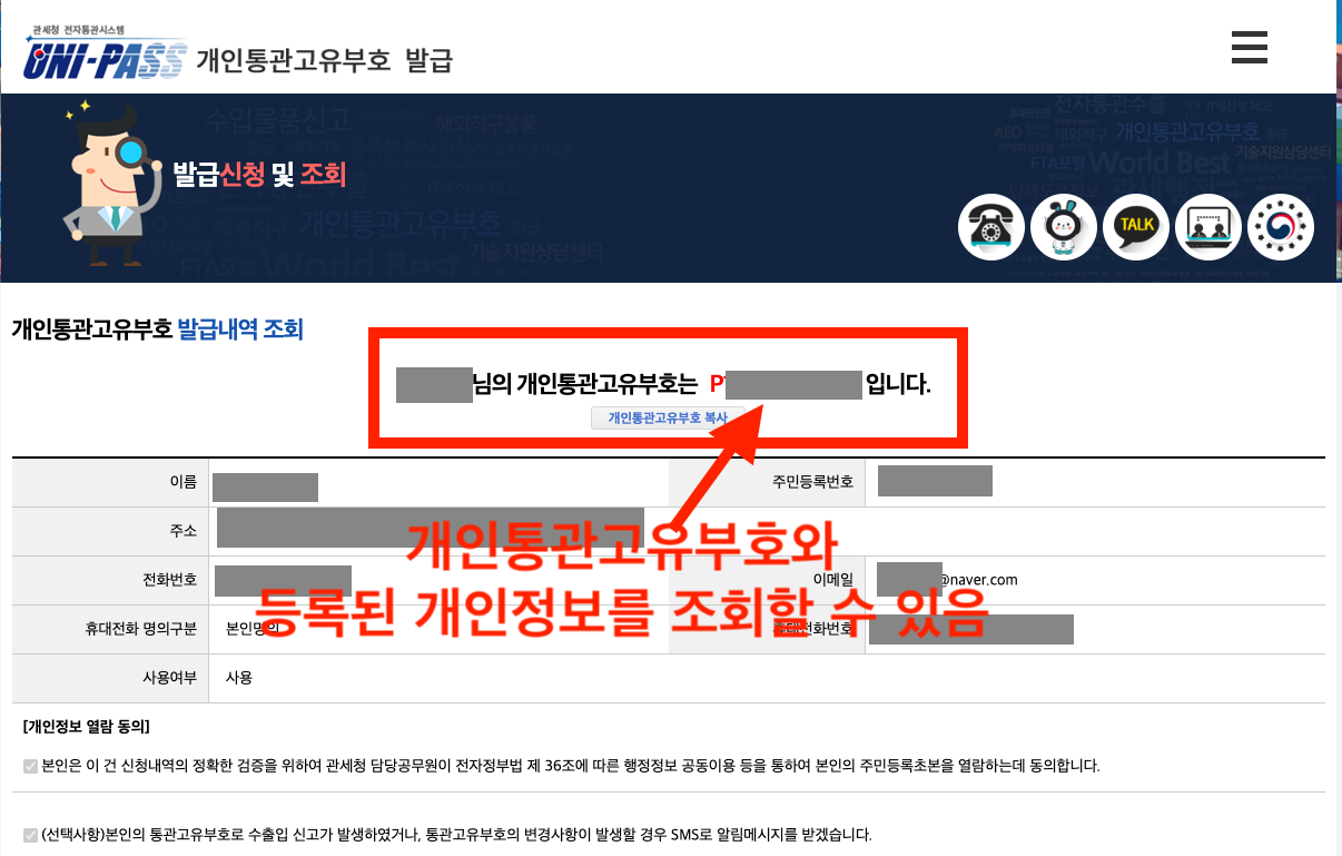 개인통관고유번호(부호) 조회 및 등록 전화번호 확인 방법