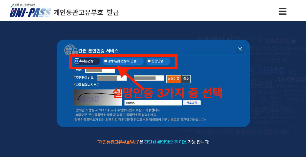 "개인통관고유부호발급"은 간단한 본인인증 후 이용 가능 합니다.
