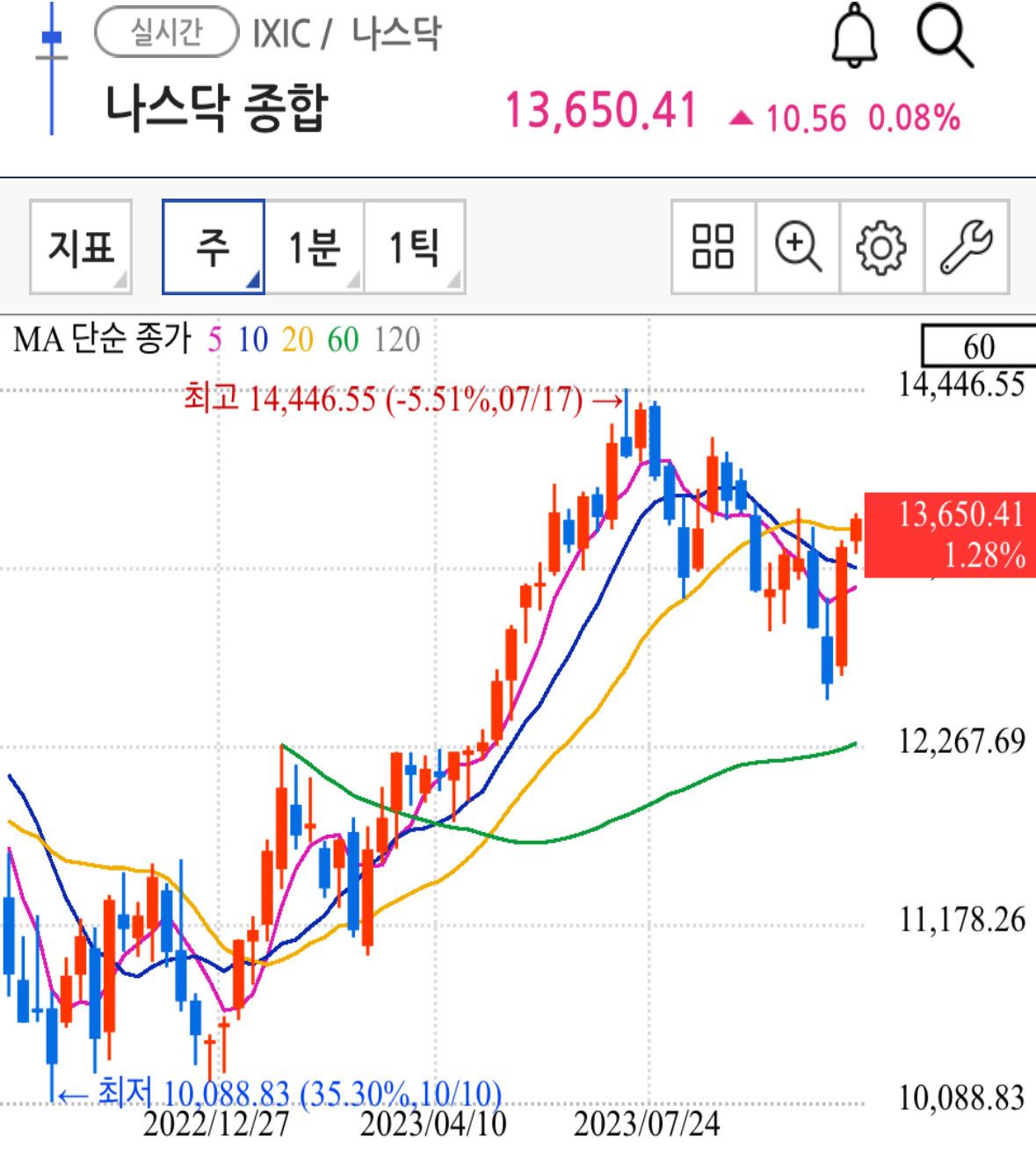 1. 미국 주식 나스닥 종합 일봉/주봉/월봉 주가 차트