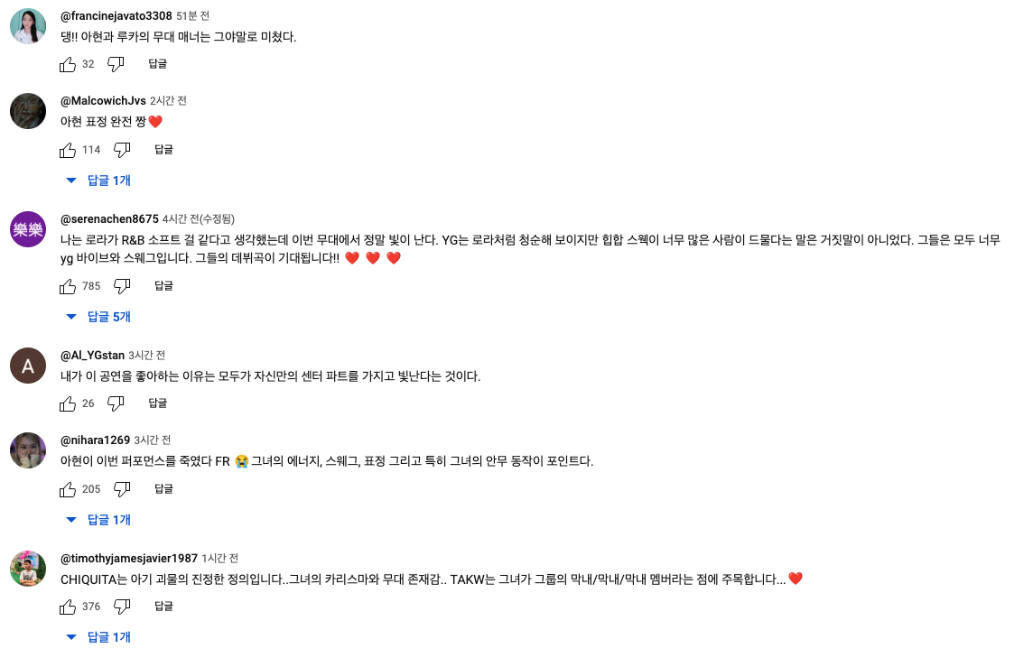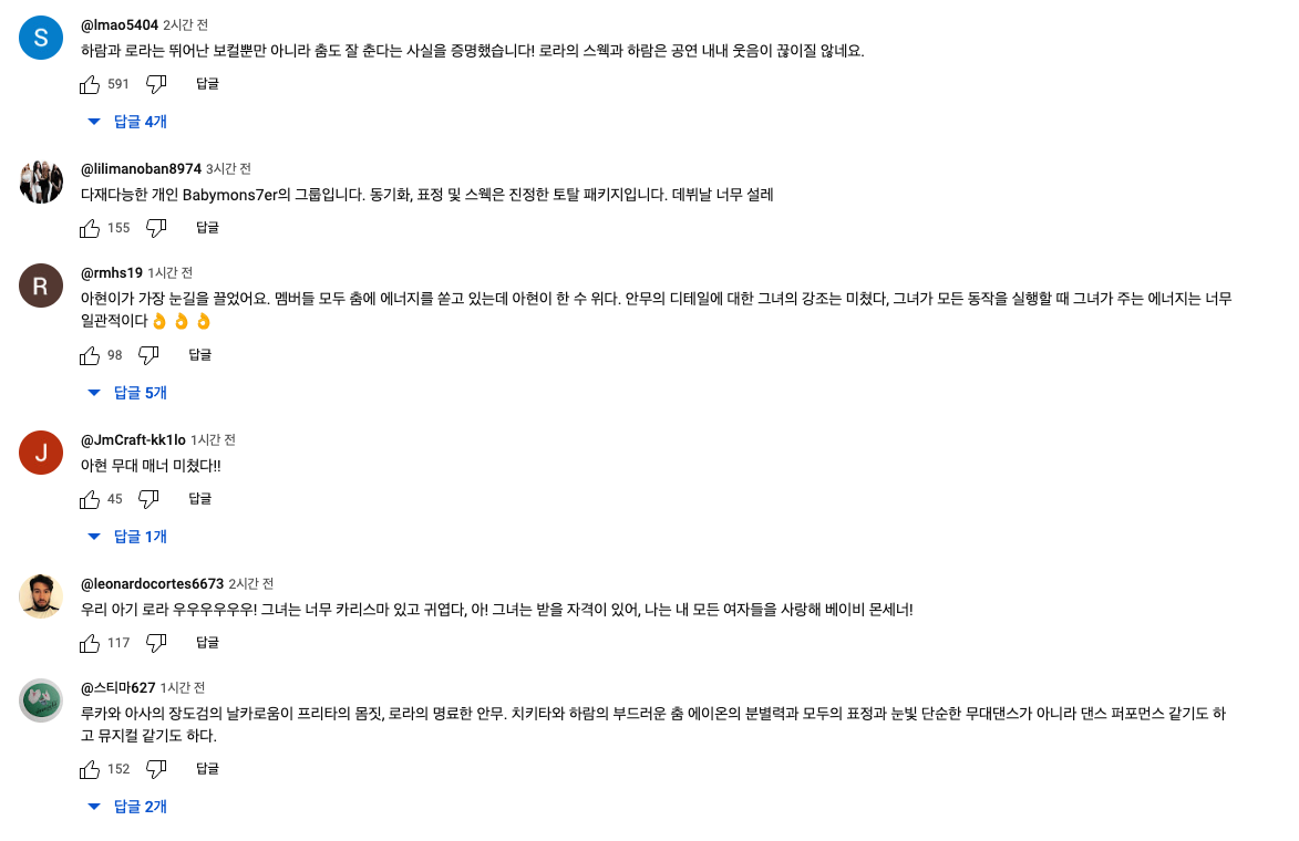 아래와 같이 벌써 엄청난 조회수에 댓글들이 모두 호응하고 있어 베이비몬스터의 데뷔는 성공적일것으로 예상됩니다.