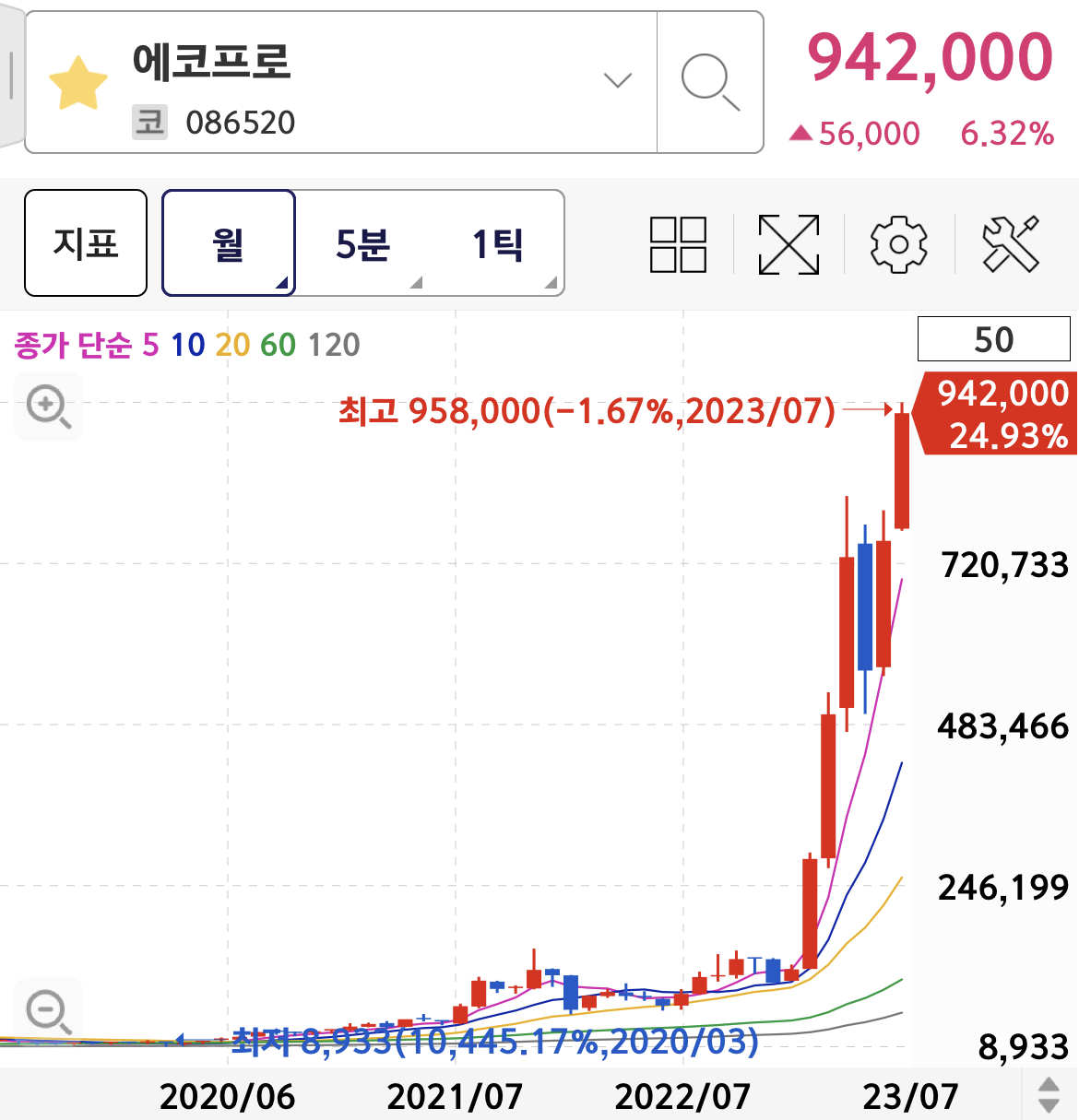 고점 논란이 이어지면서 가격조정과 기간 조정을 거치고 있던 에코프로 관련주들이 다시 2차 렐리를 시작하고 있습니다.