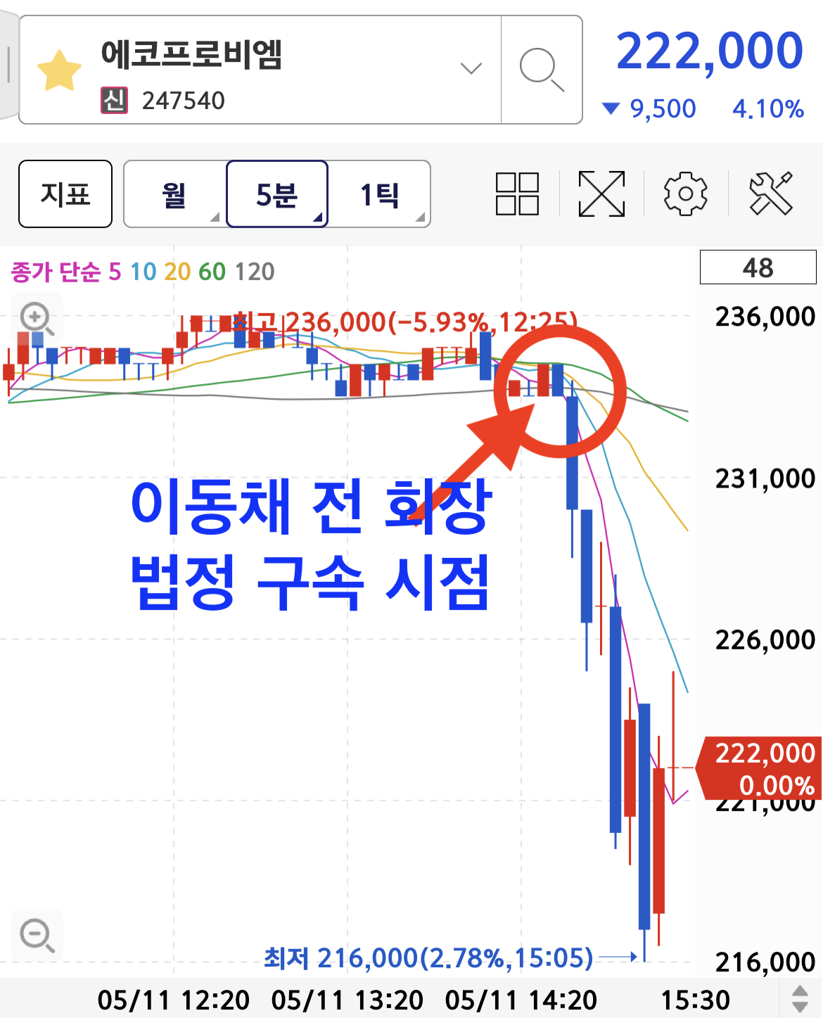 금일, 에코프로 이동채 전 회장의 법정 구속 이슈로