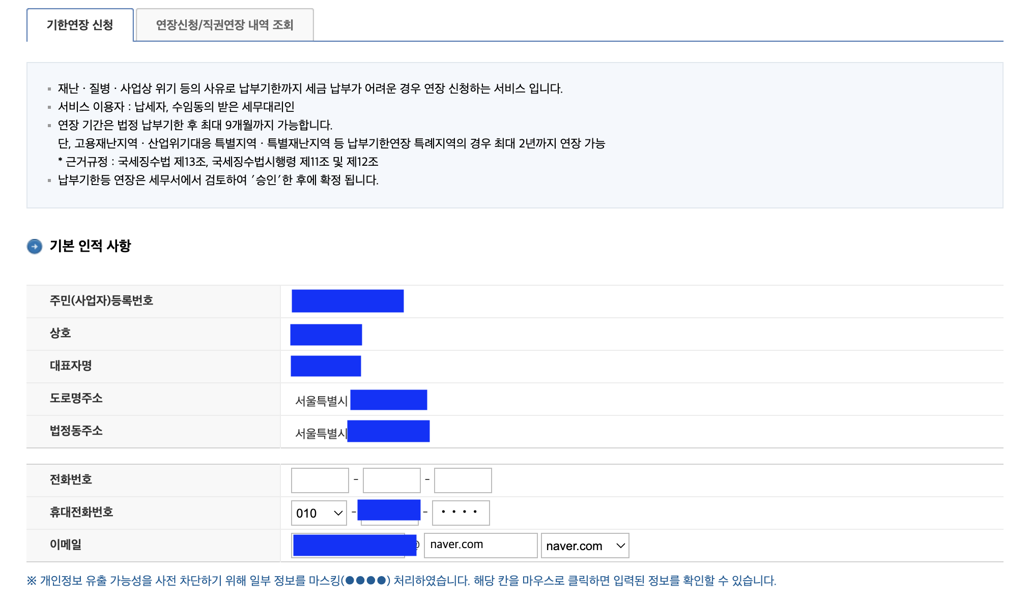 6) 내 정보 확인 및 납부 기한 연장 신청