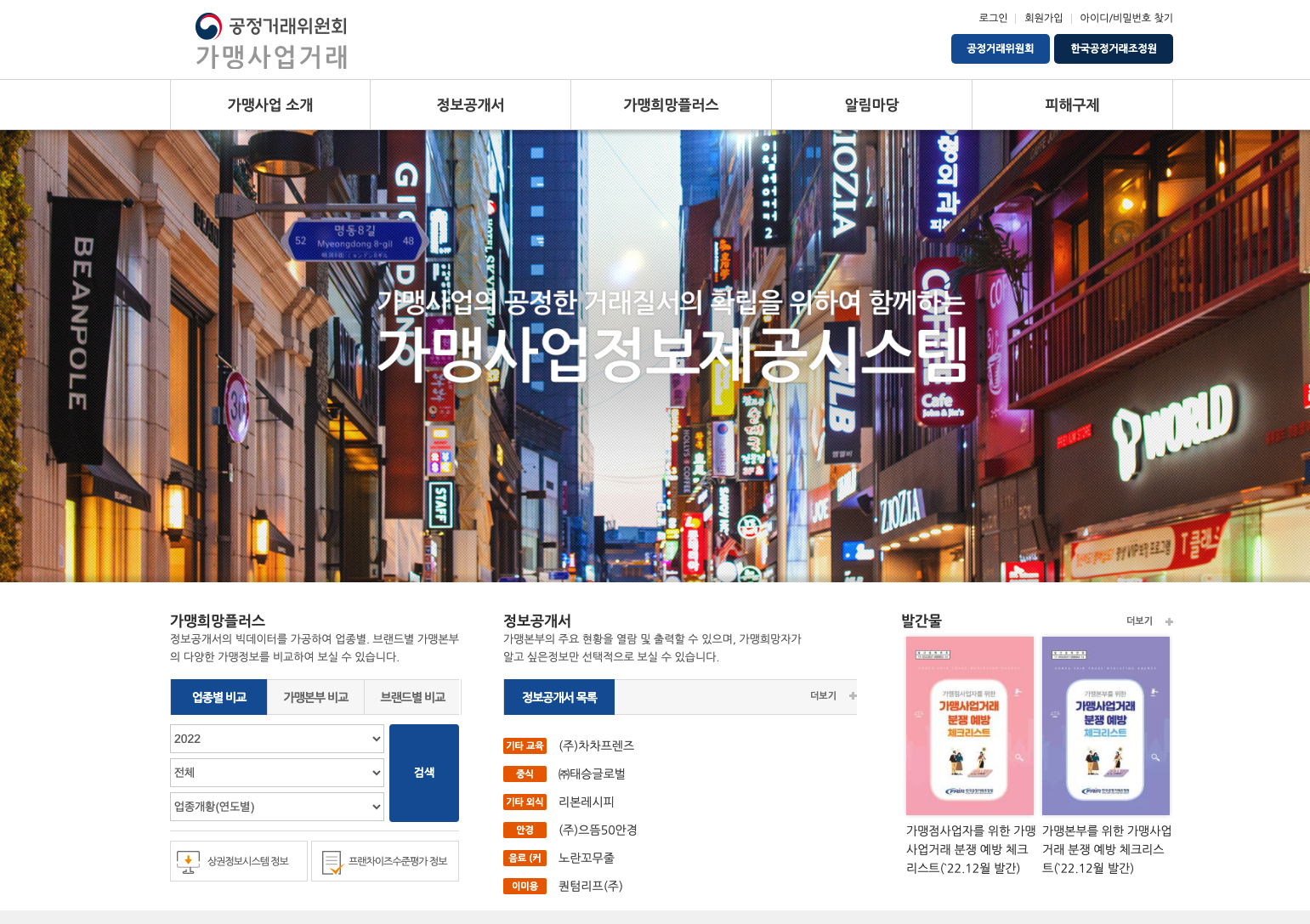 사이트 주소 : https://franchise.ftc.go.kr/index.do