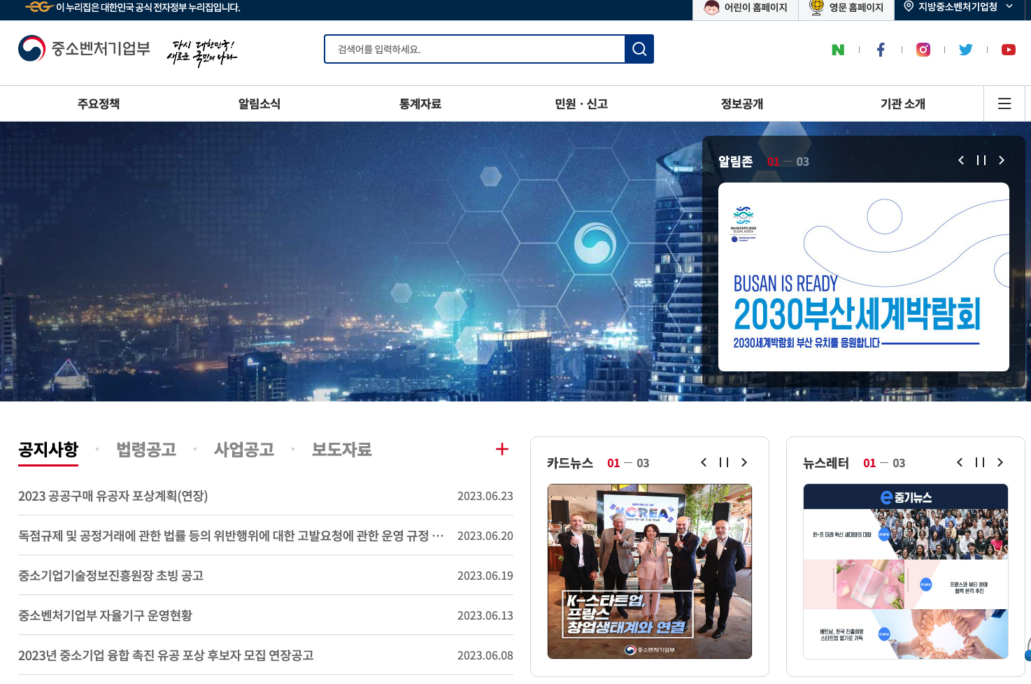 사이트 주소 : https://www.mss.go.kr/site/smba/main.do