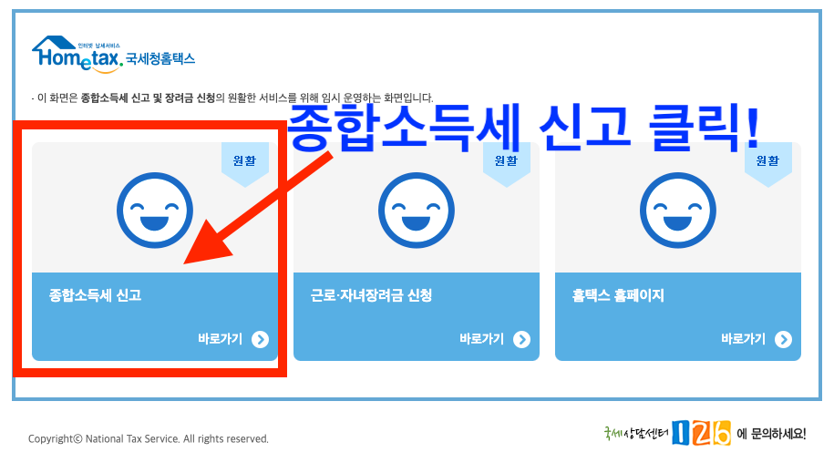 그 중에서 맨 좌측에 있는 "종합소득세 신고" 버튼을 클릭해줍니다.